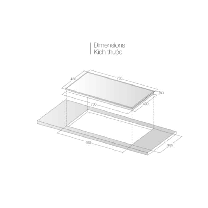 - Kích thước cắt đá: 675×395 mm
