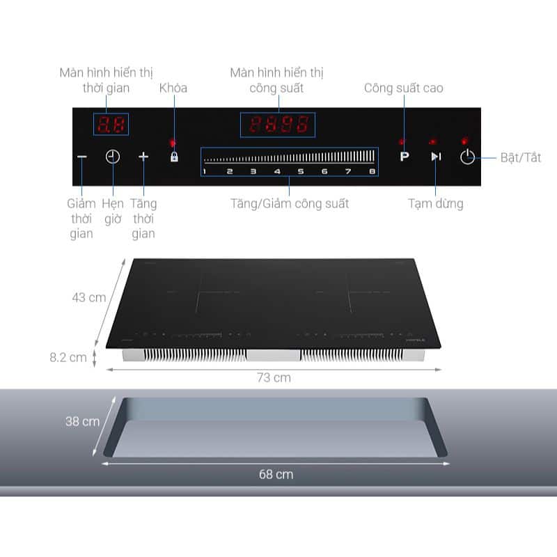 – Tích hợp bảng điều khiển cảm ứng trượt độc lập cho từng vùng nấu