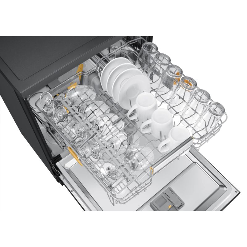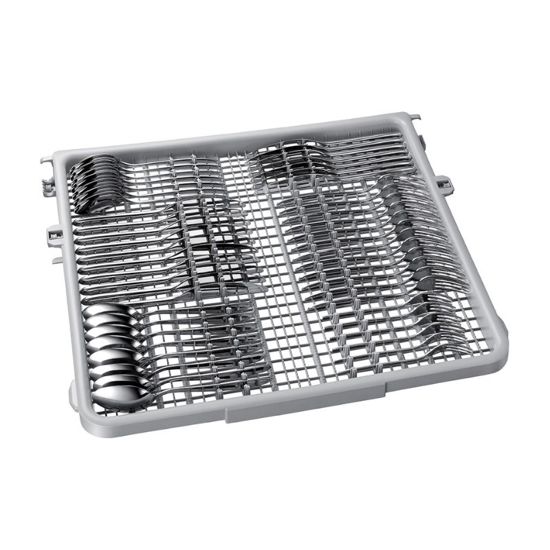 - Mẫu máy rửa bát Samsung này thiết kế khay trên, khay dưới cùng khay dao kéo cho bạn sắp xếp bát đĩa, các vật dụng gọn gàng, tiện lợi.