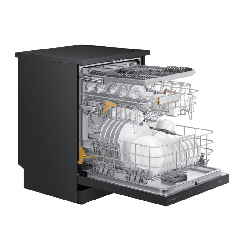 Máy rửa bát độc lập Samsung Bespoke DW60CB750FAPSV thiết kế với màu sắc Bespoke thời thượng, cho hiệu quả rửa vượt trội với công nghệ rửa xoáy kép WaterJet Clean™, thiết lập 11 chương trình rửa đa dạng, tự động hé cửa ở cuối chương trình giúp sấy khô nhanh chóng, ngăn mùi, điều khiển từ xa tiện lợi với kết nối SmartThings.