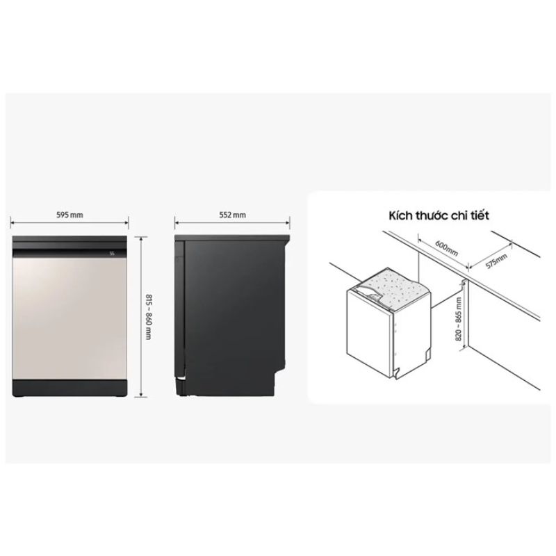 - Samsung Bespoke có thiết kế phẳng với mặt gương tông be sang trọng, tạo nên sự liên kết hài hòa với mọi mọi phong cách bếp.